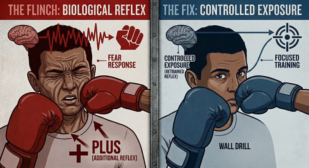 The Fix: Exposure Therapy. You have to retrain your brain’s threat detection system to override the flinch. The best way to do this is with controlled, slow-motion defensive drills where you know you aren’t going to get hurt.